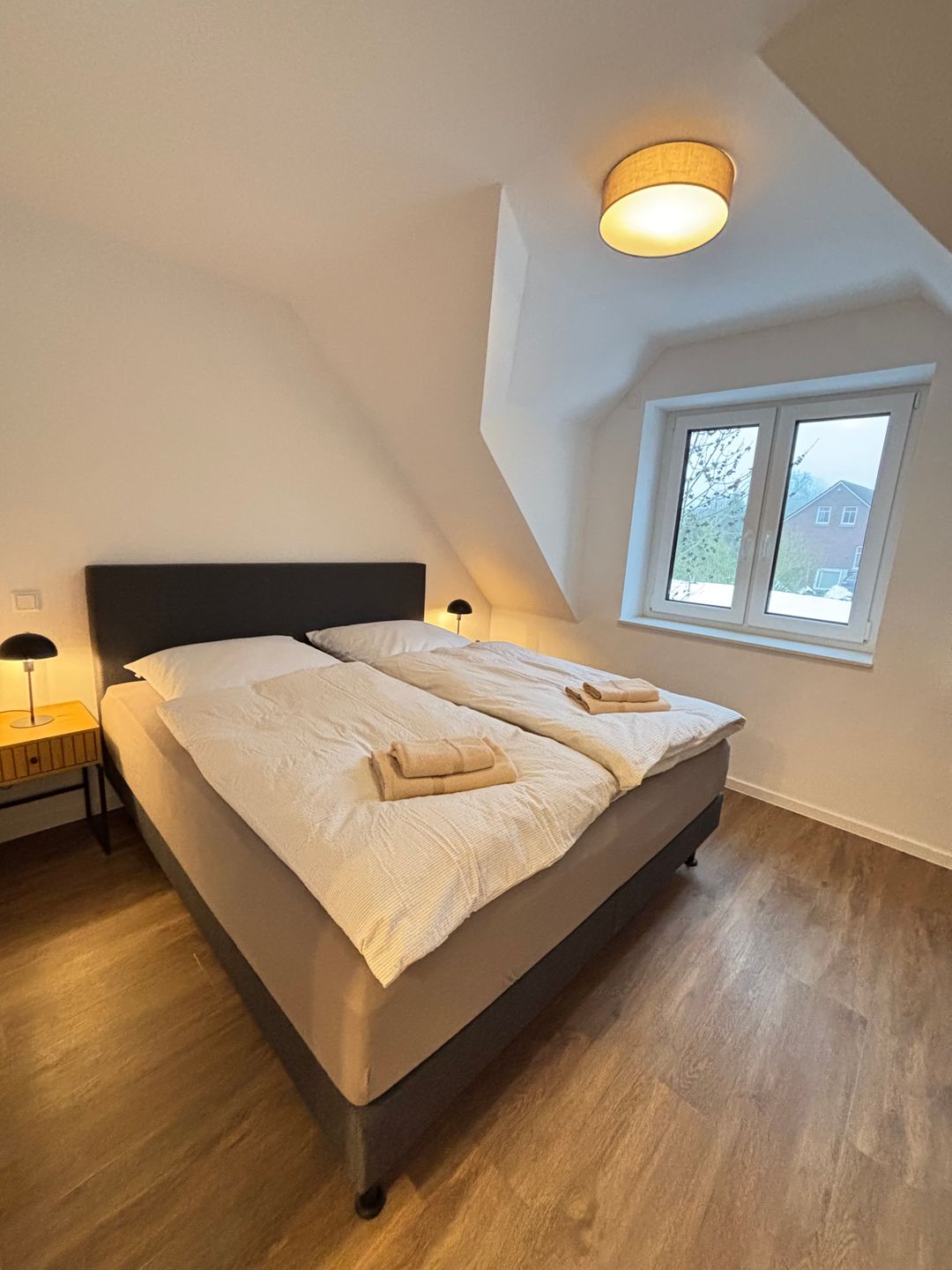 Zwei komfortabel ausgestattete Badezimmer bieten eine hochwertige Sanitärausstattung – darunter ein bodengleiches Duschbad und eine Badewanne im oberen Badezimmer. Haartrockner, Spiegel, Fenster und warmes Wasser runden das Angebot ab. Selbstverständlich stehen kostenfreie Bettwäsche, Handtücher und eine Erstausstattung in Küche und Bad bereit.