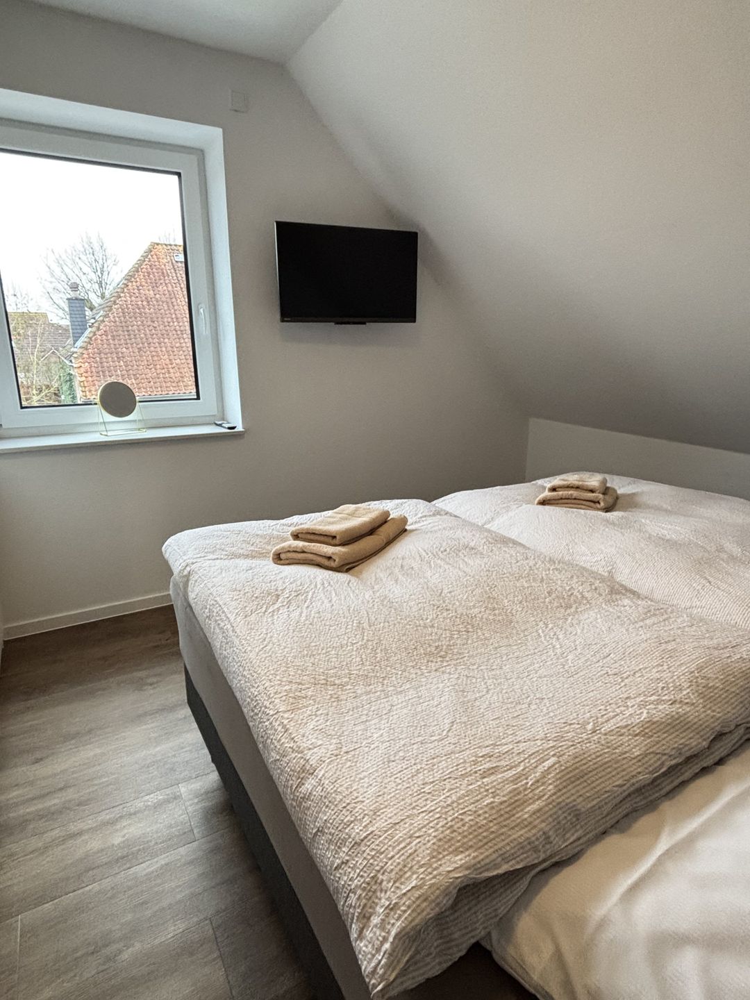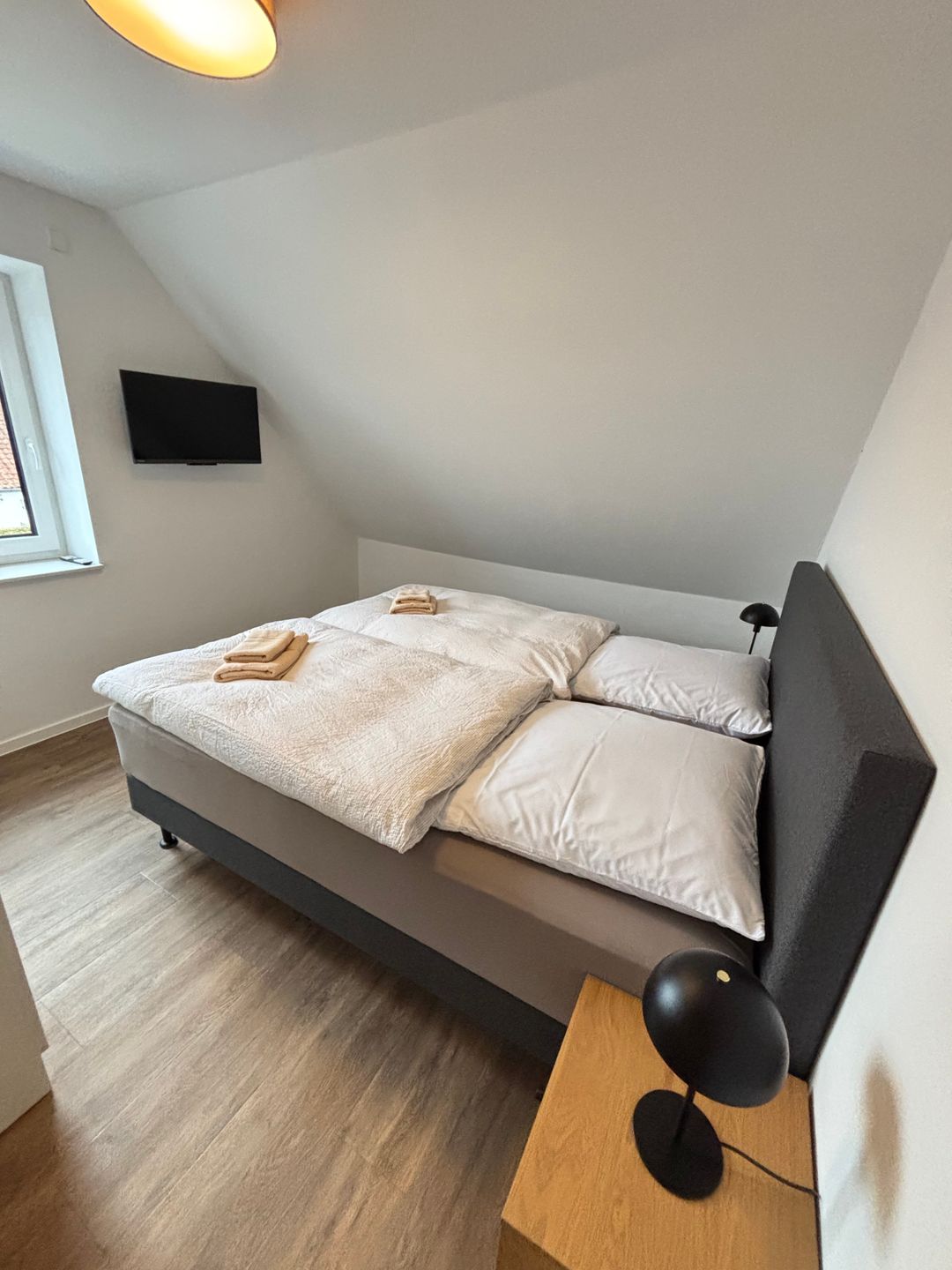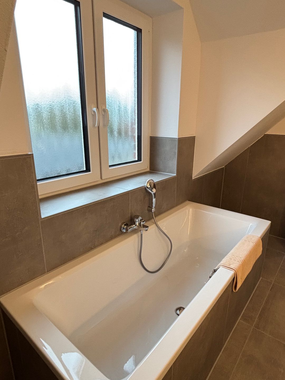 Zwei komfortabel ausgestattete Badezimmer bieten eine hochwertige Sanitärausstattung – darunter ein bodengleiches Duschbad und eine Badewanne im oberen Badezimmer. Haartrockner, Spiegel, Fenster und warmes Wasser runden das Angebot ab. Selbstverständlich stehen kostenfreie Bettwäsche, Handtücher und eine Erstausstattung in Küche und Bad bereit.