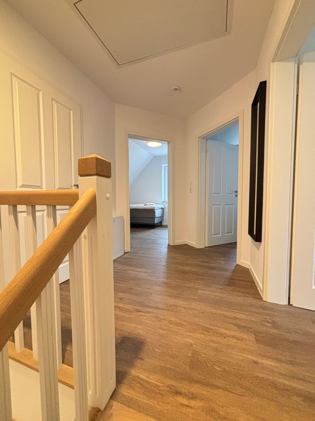 Weitere Ausstattungsmerkmale beinhalten eine Garderobe, eine Kommode, Ganzkörperspiegel, Rauchmelder und kontaktlosen Check-in/Check-out. Mit der ländlichen Lage, der Allergikerfreundlichkeit und der Kombination aus moderner Technik und großzügigem Raumangebot präsentiert sich das Ferienhaus als attraktive Unterkunft für einen erholsamen Aufenthalt in Emden und Umgebung.